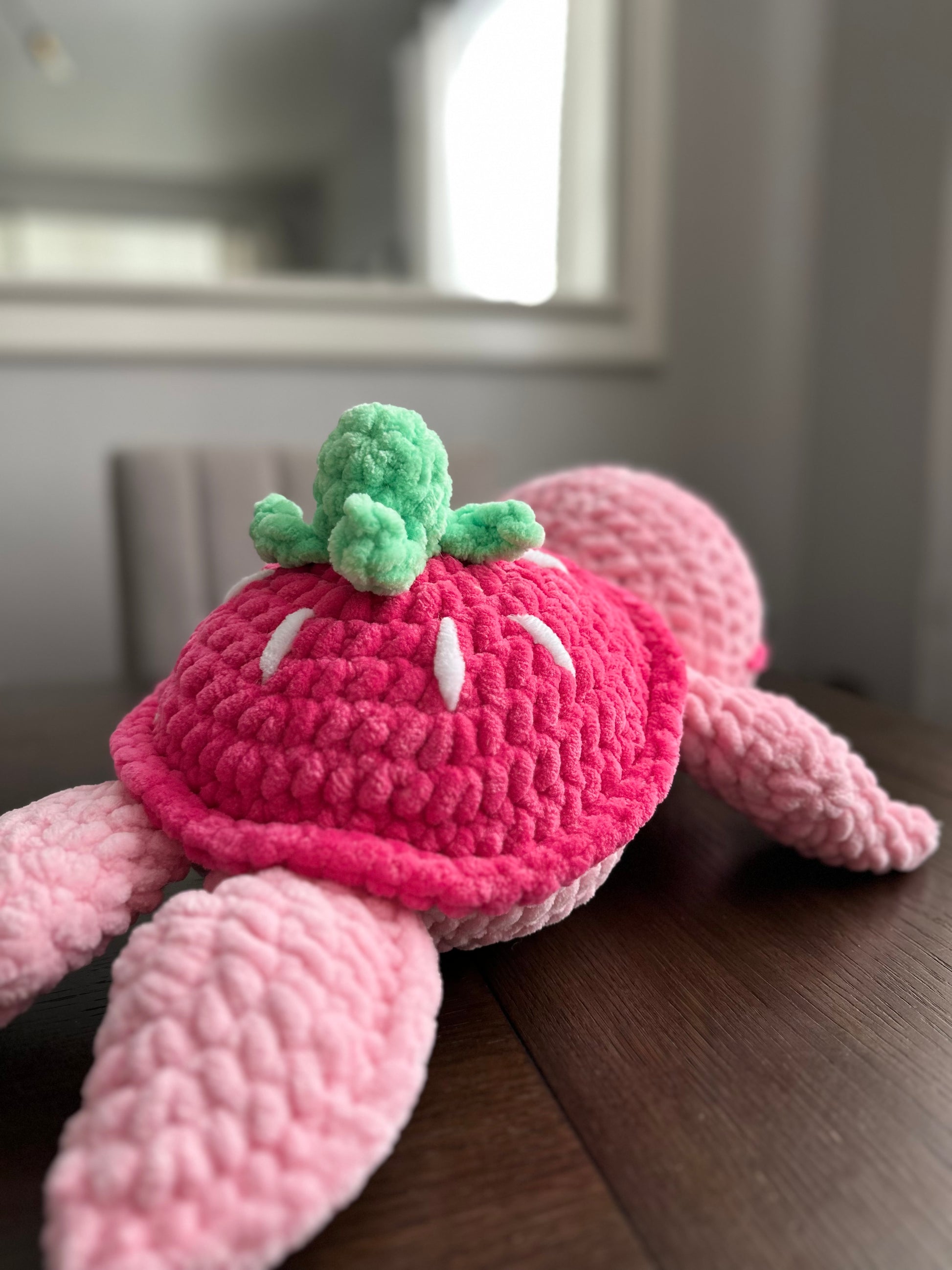 Meet our lovely Crochet Strawberry Sea Turtle, a delightful handmade piece that brings a touch of fruity charm to any space!